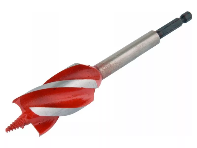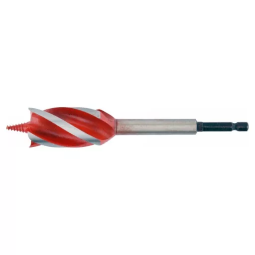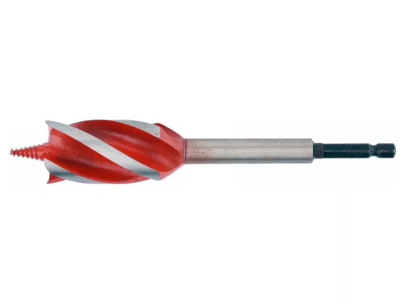A 4-blade drill bit that leaves even and smooth hole edges and facilitates perpendicular drilling thanks to its special helix design.