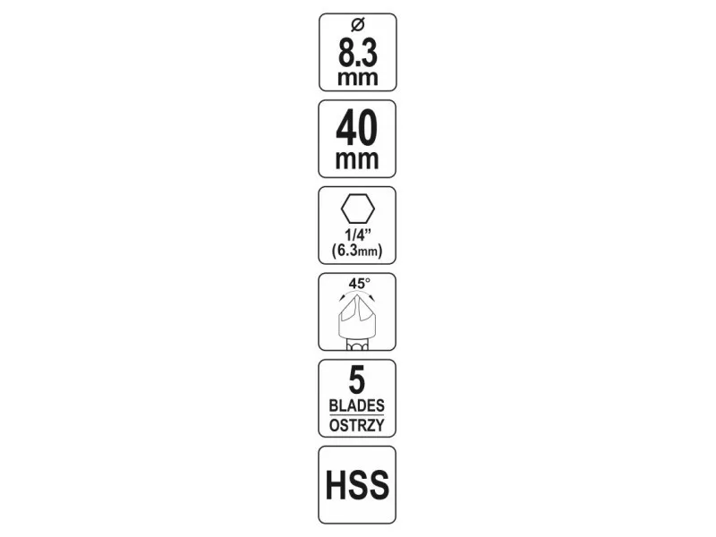 YATO Konischer Senker für Metall HSS mit 8,3 mm Bitgriff YATO Konischer Senker für Metall HSS mit 8,3 mm Bitgriff YATO Konischer Senker für Metall HSS mit 8,3 mm Bitgriff