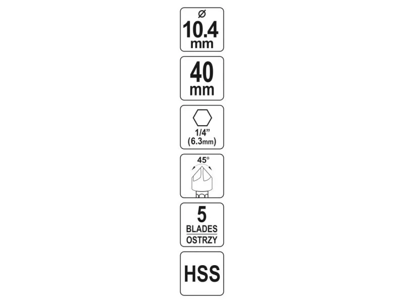 | Application | chamfering the edges of holes in metal, wood, laminated boards, etc., for M5, M6, M8, M10 screws, for screws with heads PH2, PH3, PZ2, PZ3 |