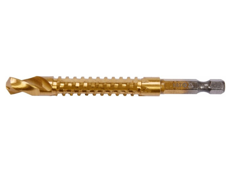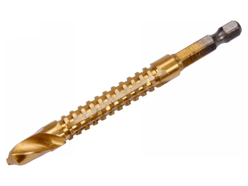 9 mm metal milling drill from Yato YT-44827. Milling drill made of high quality high -speed HSS 4241 titan -covered titanium. Intended for professional, industrial applications. STAL HSS provides several times faster drilling in stainless, acid -resistant and structural steel. The "Split Point" cross blade with an apical angle of 118 ° allows drilling without prior scoring, also with large diameters of drilling, guaranteeing perfect centering. They enable drilling in every direction and at any angle, perfect for drilling holes, including for door locks. The ground surface ensures excellent drilling precision. Made of one piece of steel, making them very strong and durable. Hard coating 58–62 HRC coated with titanium nitride maintains resistance to damage and stretching, maintaining the geometry of drilling • Lower drilling temperature and rapid heat dissipation do not cause melting galvanized and subsequent corrosion of drills • The smaller friction factor limits the adhesion to the chips and filings. 1/4 ″ hexagon handle (6.3 mm).