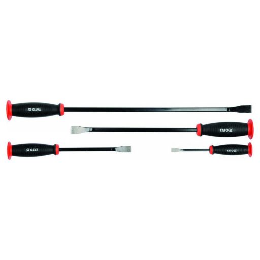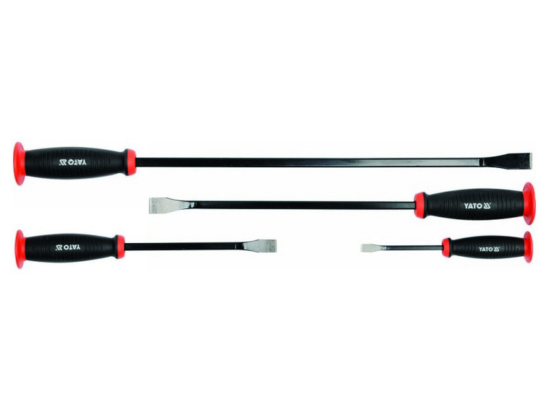 The YT-4730 pry bar set consists of four forged carbon steel levers that can handle the toughest challenges. An ideal solution for workshops, services, and home garages.