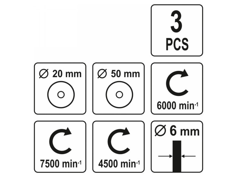• Brush diameters: 20 mm, 50 mm, 50 mm