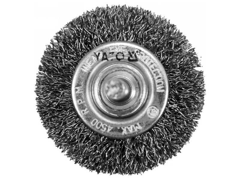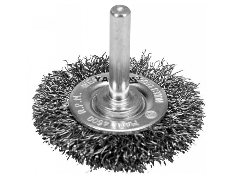 Rotary brush designed for cleaning and polishing metal surfaces, paint coatings, as well as rust removal and tool cleaning, using a grinder.