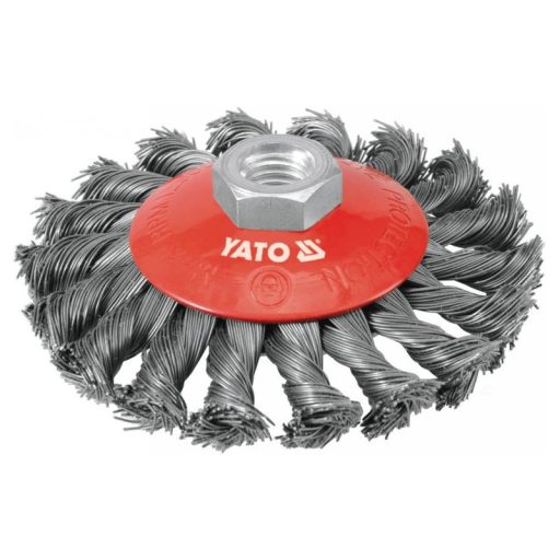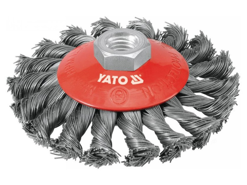 The YATO YT-4763 wire wheel brush is a professional tool for intensive surface cleaning and preparation. The durable construction with braided wire and M14 thread ensures efficient work.