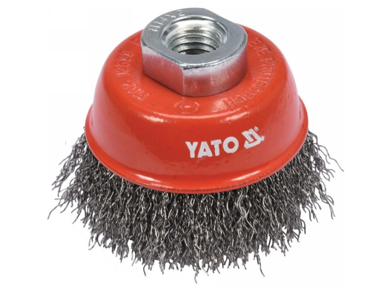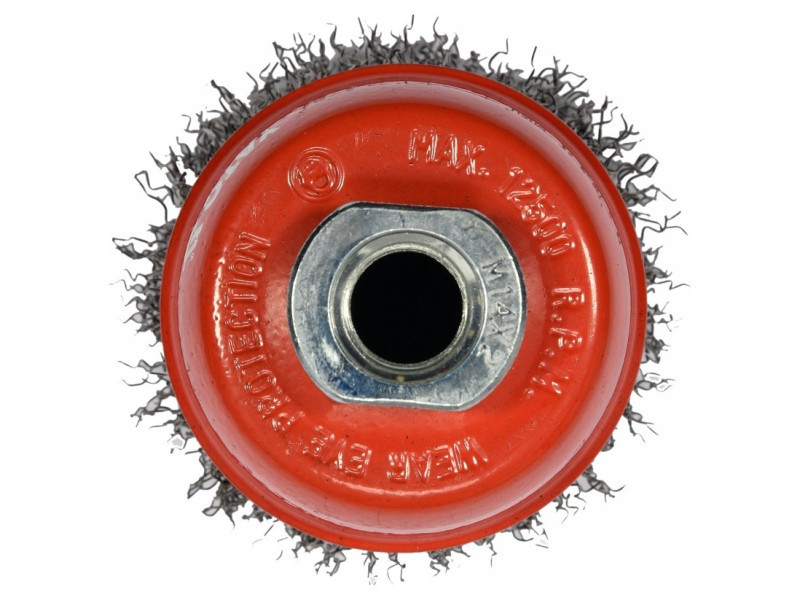 A butt brush designed for cleaning and polishing metal surfaces, paint coatings, as well as rust removal and tool cleaning, using a grinder.