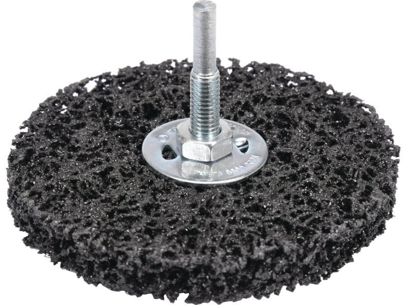 Rotary brush designed for removing rust and paint coatings from flat surfaces and cleaning tools.
