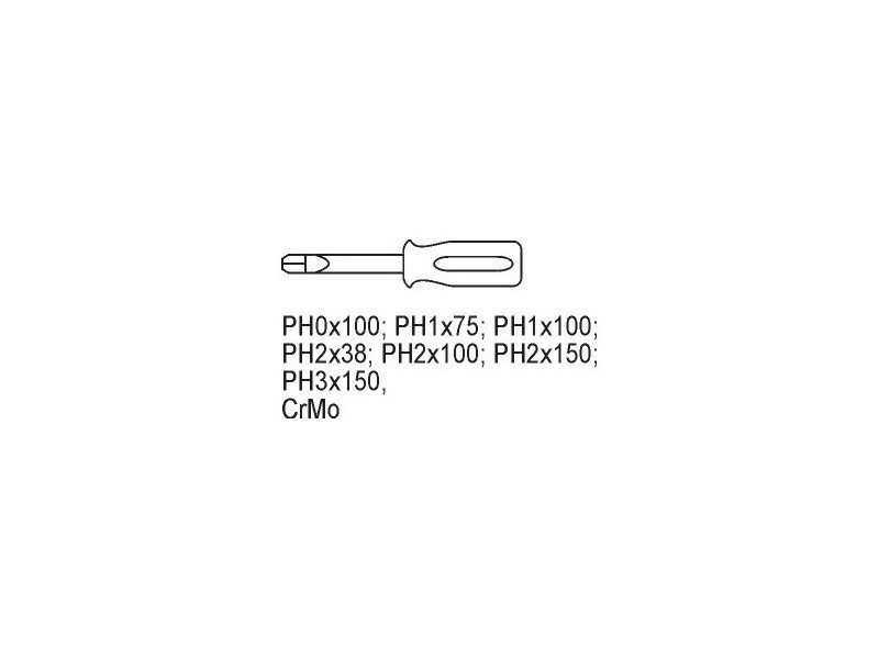 | Set includes | Phillips screwdriver (PH) x7 (PH0x100 mm, PH1x75 mm, PH1x100 mm, PH2x38 mm, PH2x100 mm, PH2x150 mm, PH3x150 mm) |