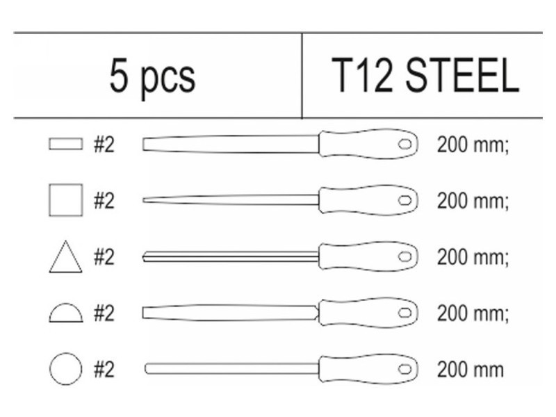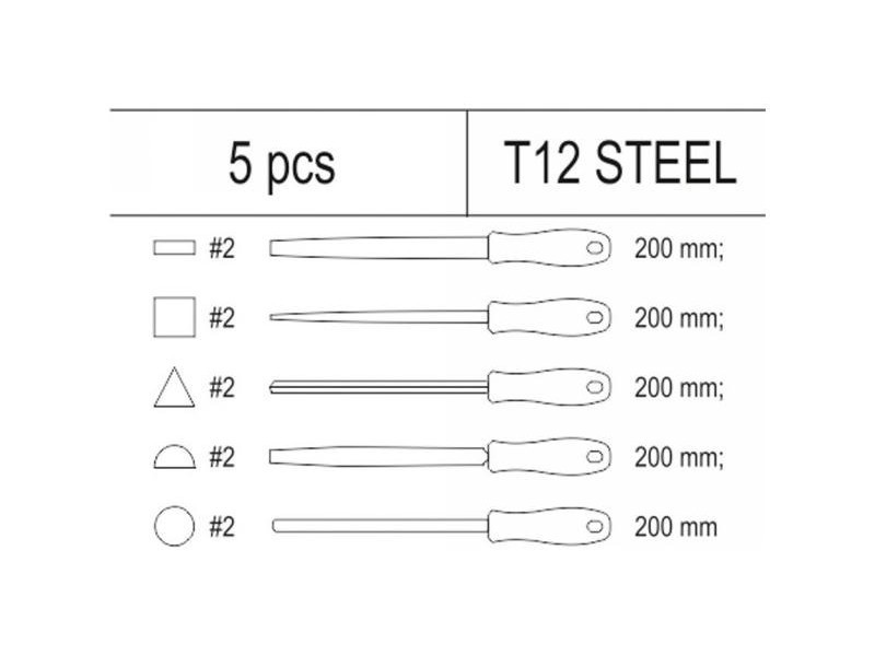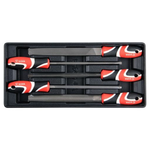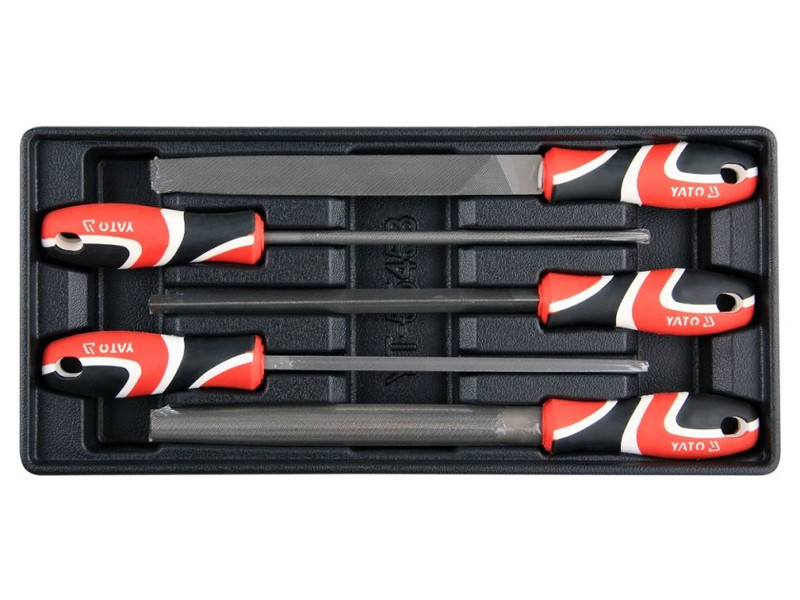 Drawer insert containing 5 metal files. - cartridge - flat metal file YT -6185 length 200 mm - Square metal file YT -6186 length 200 mm - Filler for metal triangular YT -6187 Length 200 mm - files for metal semi -circular metal YT -6188 length 200 mm - metal file - metal file Round YT-6189 length 200 mm
