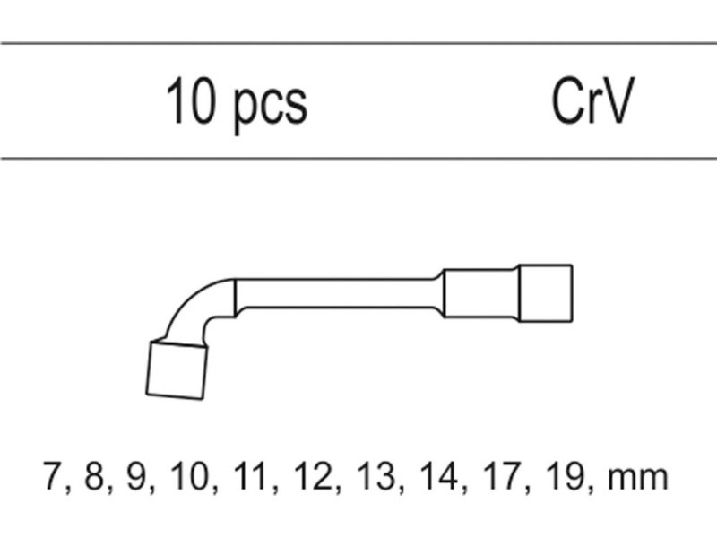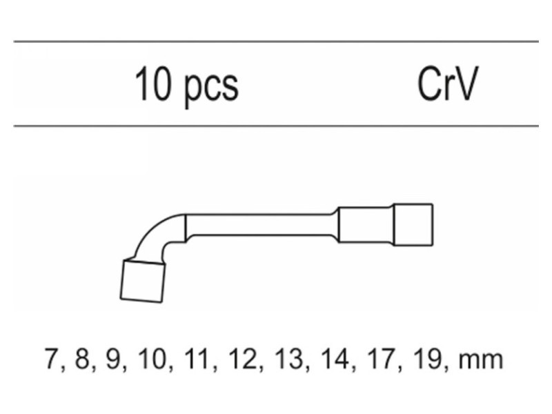 | Set includes | L-type socket wrench x10 (7 mm, 8 mm, 9 mm, 10 mm, 11 mm, 12 mm, 13 mm, 14 mm, 17 mm, 19 mm) |