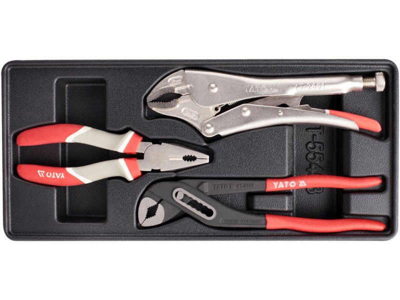 Drawer insert containing pliers. - insert - universal pliers YT -2007 Long -length 180 mm - setting pliers YT -2090 length 250 mm - Morse clampic pliers YT -2451 Length 250 mm