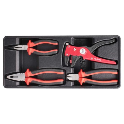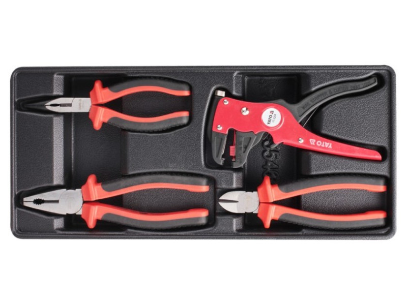 Drawer insert containing a set of 4 isolated pliers. - insert - extended straight pliers VDE YT -2104 Length 160 mm - universal pliers VDE YT -2102 Length 180 mm - Side cutting pliers VDE YT -2109 Length 160 mm - automatic insulation wrapper YT -2268