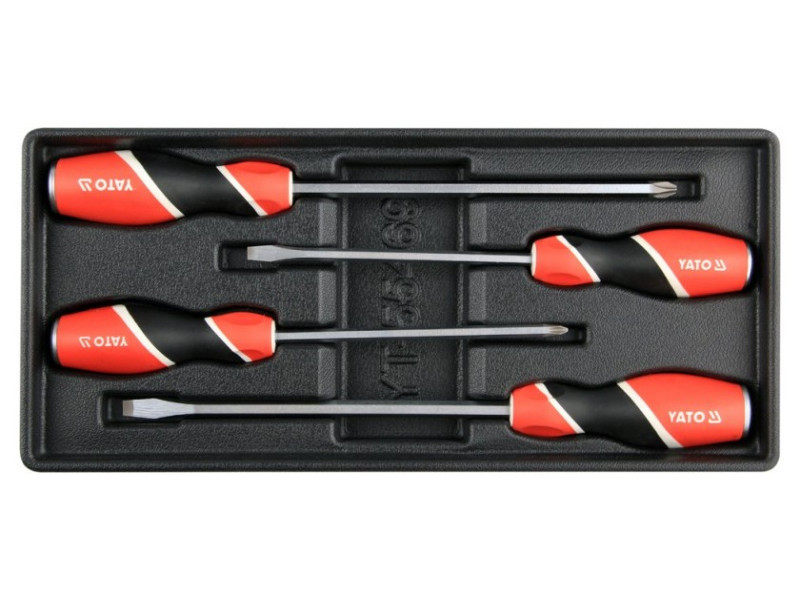 Drawer insert containing a set of 4 beating screwdrivers. - insert - screwdrivers for beating 6x150 mm, 8x200 mm - screwdrivers for beating PH2x150 mm, pH3x200 mm