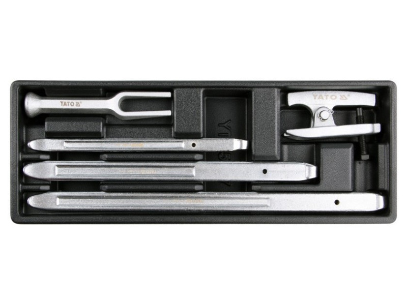 Drawer insert containing a set of tire spoons and two welt for steering rod ends. -cartridge-tires for YT-0809, YT-0808, YT-0807-welt for spherical pins YT-0612-welt for tie rods YT-0615