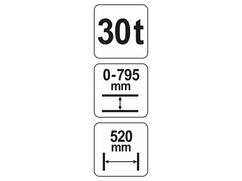 Professional hydraulic press with a pressure of 30 tons. Its massive and strong construction makes it applicable to any automotive or manufacturing workshop. It has all the required certificates allowing it to work in professional factories.