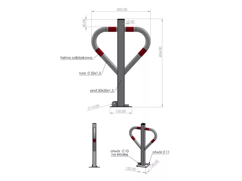 Folding parking lock "butterfly" for effective protection of areas against unauthorized entry or parking of vehicles. Provides convenience and security in managing access to designated areas. Allows you to temporarily block parking spaces or entry, such as on private property, pedestrian and roadways, green areas, flood embankments, boardwalks.