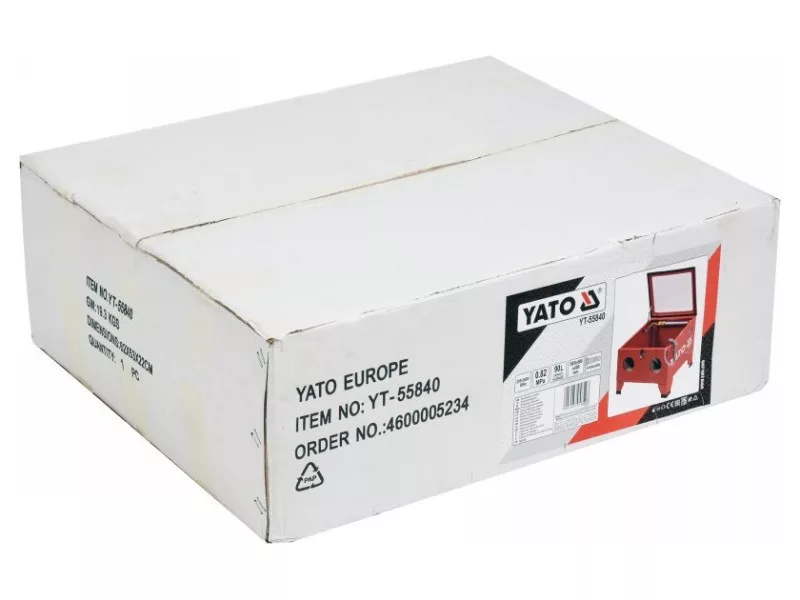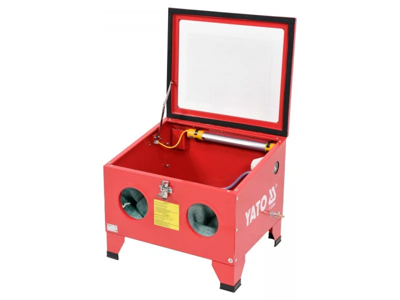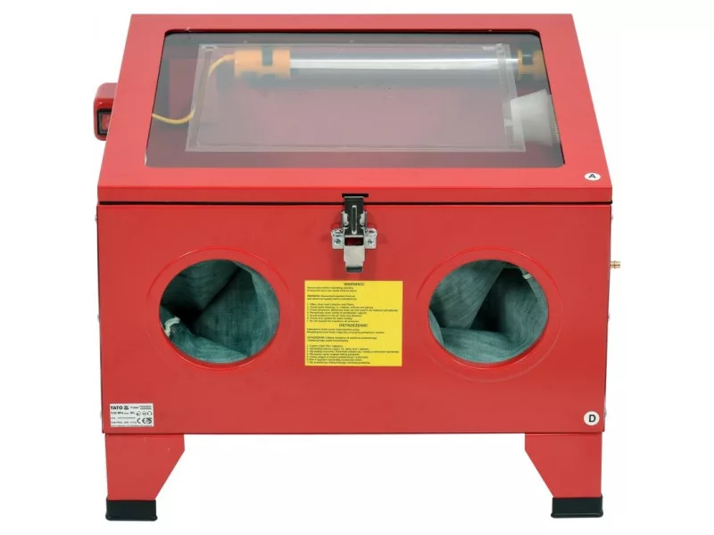 | Set includes | sandblaster, sandblasting gun, a hose sucking abrasive, air connection hose with spigot, nozzle x4 (Ø4, Ø5, Ø6, Ø7 mm), lamp power supply, window protection foil x4, gloves, |