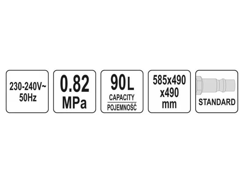 | Air supply hose inside diameter | 3/8" (9.5 mm) |