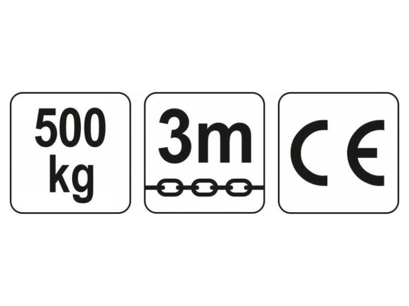 Manual chain drawstring designed for intensive use in industrial conditions as well as in mechanical workshops and services. Invaluable in transport works. For precise lifting of cargo and movement in a horizontal plane. Small dimensions and own weight as well as effective anti -corrosion protection. The chains and a special design significantly increase the level of safety. Lifting capacity 0.5 t, lifting height 3 m, double, galvanized maneuvering chain, length about 2 m. It does not require registration in u.d.t. Hand chain drawstring designed for intensive use in industrial conditions. For precise lifting of cargo and movement in a horizontal plane.