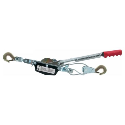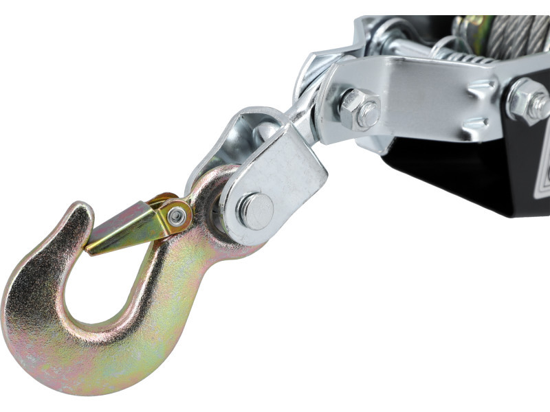 The hand -driven cable strip consists of a steel body containing the drum, gears and a large, properly selected ratio. The drive lever is used to move the drum and wind the steel rope. The winch can move loads with a weight of up to approx. 1020 kg over 3 m. The cable knockingr with manual drive is used to transport loads in a horizontal plane, e.g. for dragging the chests on the ramp. Due to the construction, it must not be used for vertical weightlifting.