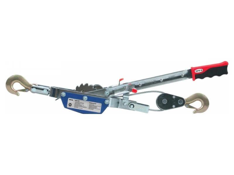 The hand -driven cable strip consists of a steel body containing the drum, gears and a large, properly selected ratio. The drive lever is used to move the drum and wind the steel rope. The winch can move loads with a weight of up to approx. 1325 kg at a distance of approx. 3 m. Hand -driven cable knockingr is used to transport loads in a horizontal plane, e.g. to drag the boxes on the ramp. Due to the construction, it must not be used for vertical weightlifting.