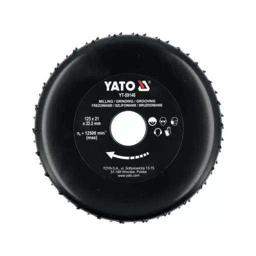 125 mm diameter milling cutter made of carbon steel designed for fast and effective processing of wood, aerated concrete, and plasterboard. The 21 mm thick blade ensures precise and stable cutting, while the hardened and lacquered surface increases the tool's durability.