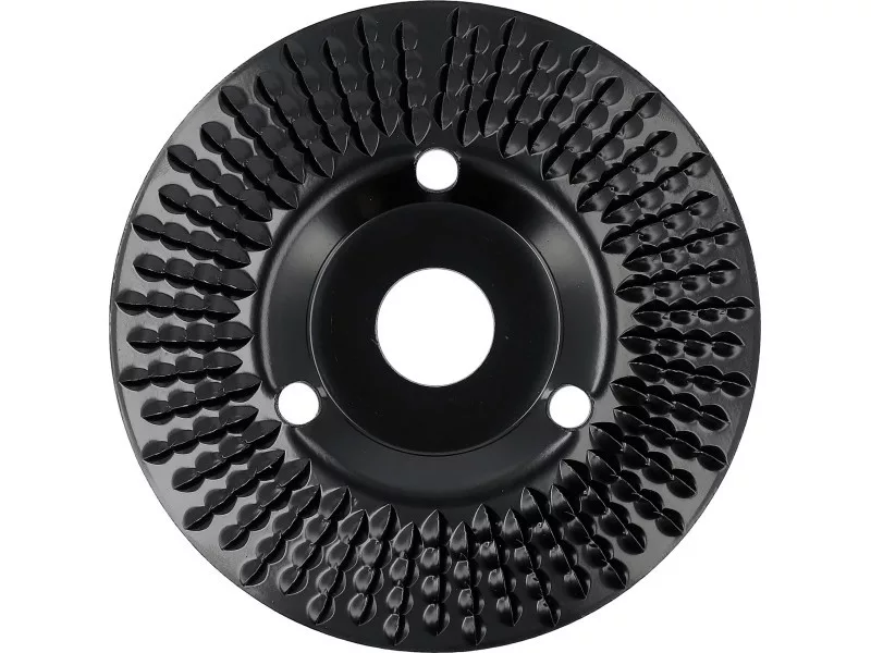 125 mm diameter slanting cutter made of carbon steel designed for rough machining of wood, aerated concrete, and plasterboard. It allows for effective material removal (grinding, removing old coatings) and surface preparation, achieving a preliminary smooth finish. The blade ensures precise and stable work, while the hardened and lacquered surface increases the tool's durability.