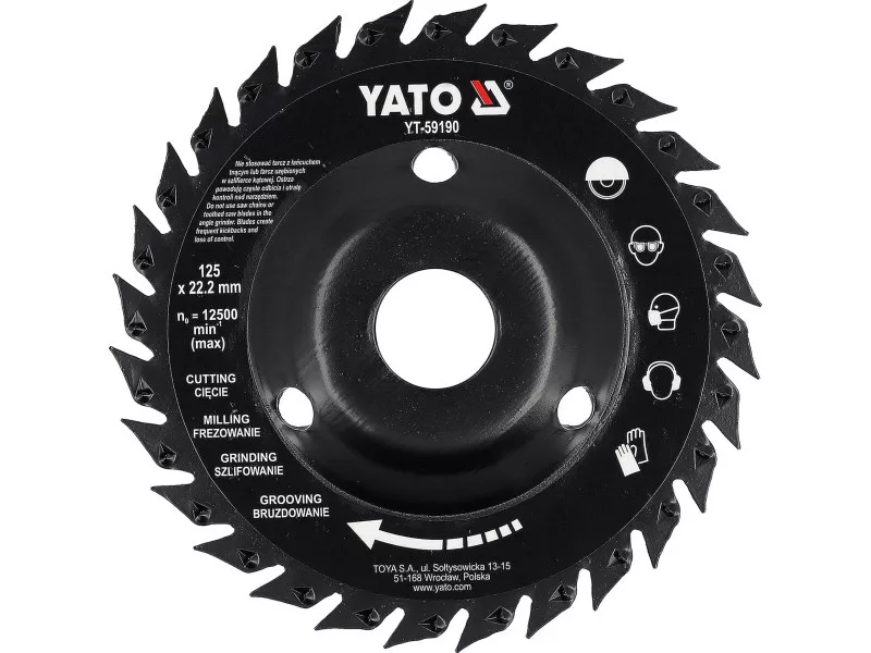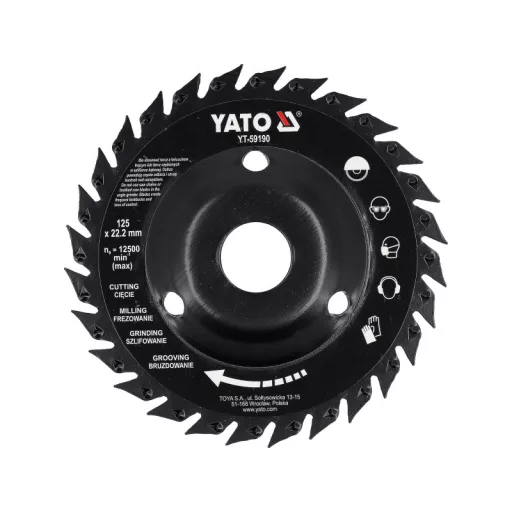 With a maximum speed of 12500 rpm, the milling cutter works efficiently, maintaining safety during use. The 22.2 mm mounting hole allows for convenient adaptation to standard angle grinders.