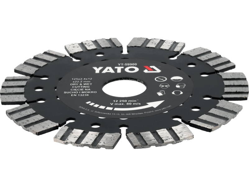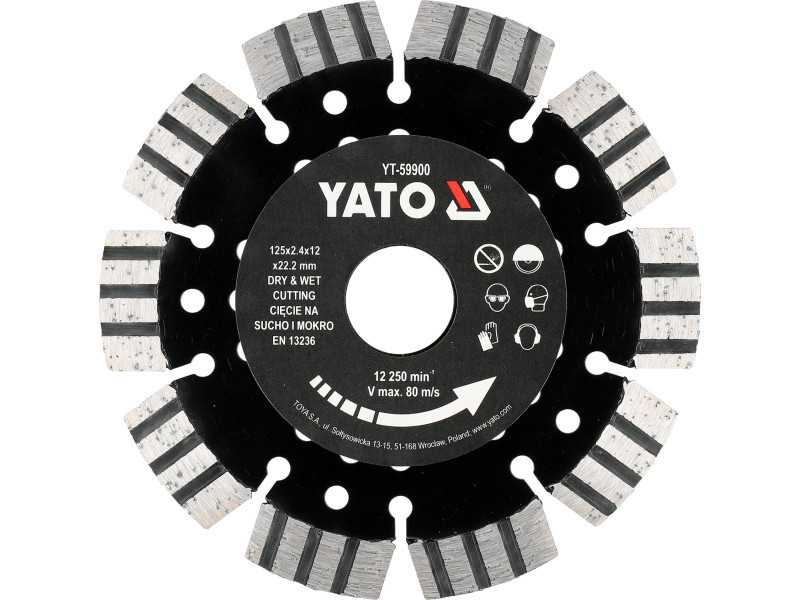Diamond blade for precise cutting of hardened concrete, bricks, granite, walls, stones, sandstone, both dry and wet.