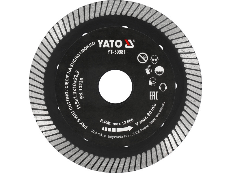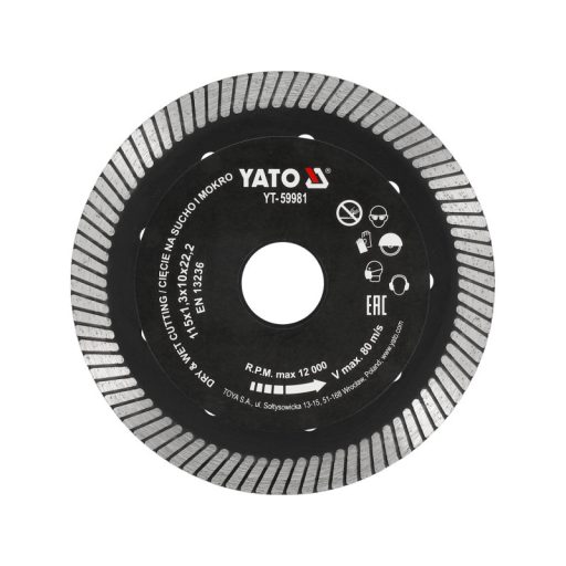 YATO Diamanttrennscheibe 115 x 1,3 x 10 x 22,2 mm Turbo
