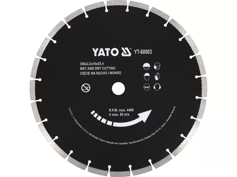 YATO Diamanttrennscheibe 350 x 3,4 x 10,0 x 25,4 mm segmentiert
