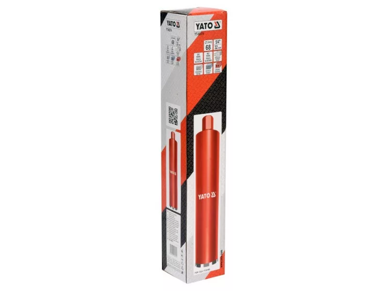 YATO crown drill bit for drill rig designed for non-impact operation – dry and wet – with a drill rig (such as YT-81980). Allows fast and precise drilling of holes, even without a tripod, in reinforced concrete, concrete, silicate, such as. under electrical boxes, drilling ceilingsów for pipes and cables, installation of cable routes or ventilation ductsów.