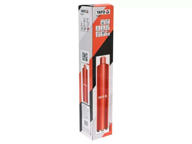 YATO crown drill bit for drill rig designed for non-impact operation – dry and wet – with a drill rig (such as YT-81980). Allows fast and precise drilling of holes, even without a tripod, in reinforced concrete, concrete, silicate, such as. under electrical boxes, drilling ceilingsów for pipes and cables, installation of cable routes or ventilation ductsów.