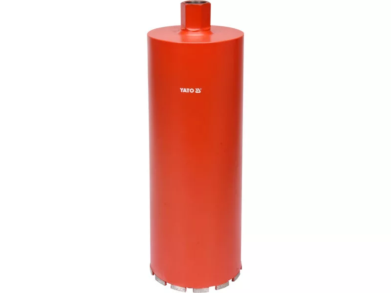 YATO crown drill bit for drill rig designed for non-hammered operation – dry and wet – with a drill rig (such as YT-81980). Allows fast and precise drilling of holes, even without a tripod, in reinforced concrete, concrete, silicate, such as. under electrical boxes, drilling ceilingsów for pipes and cables, installation of cable routes or ventilation ductsów.