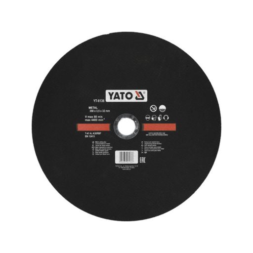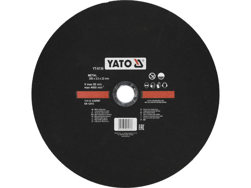 Metal cutting disc by YATO brand, made of high-grade abrasive material of suitable hardness and granulation.