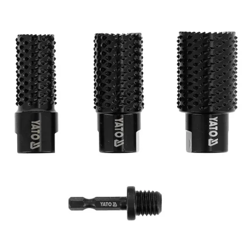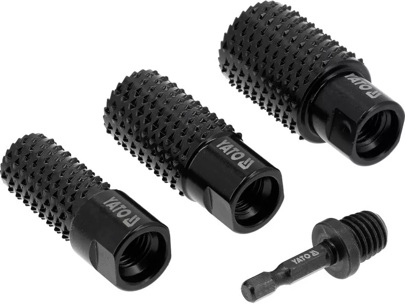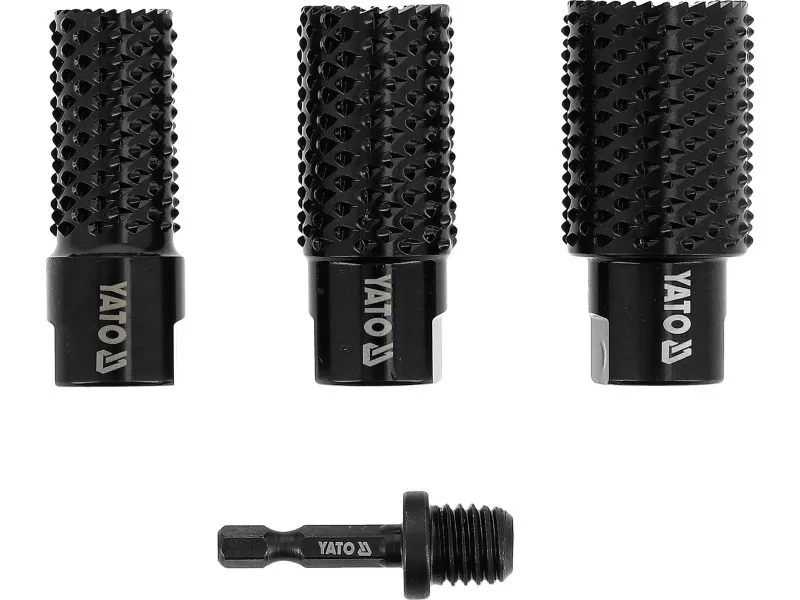 The set includes three chisels with diameters of 20, 25, and 30 mm, as well as an adapter with a hexagonal handle 1/2" (12.7 mm), allowing for quick installation in electric tools. Made of carbon steel with a hardness of HRC 40-50, they guarantee durability and resistance to wear. Chisels operate stably at speeds up to 12500 rpm, ensuring effective scraping, shaping, and leveling of wooden surfaces. The set will be useful in a carpentry workshop, for renovation, and modeling work.