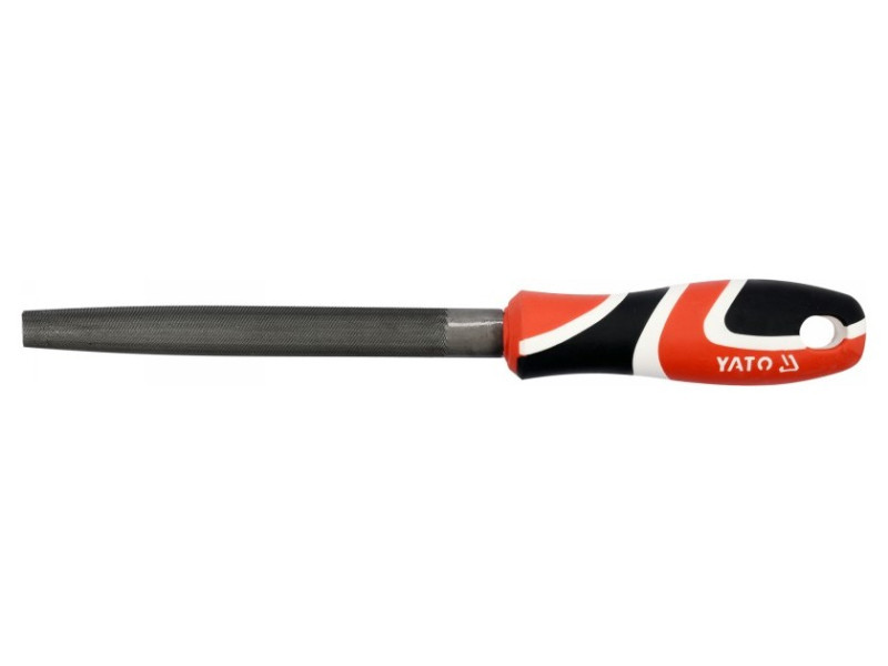 Half-round, tapered, three-cut metal file, 150 mm, with a three-component handle by Yato.