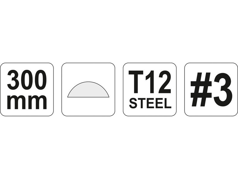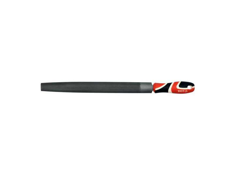 Semi-circular , tapered, three-cut metal file, 300 mm, with a three-component handle by Yato.