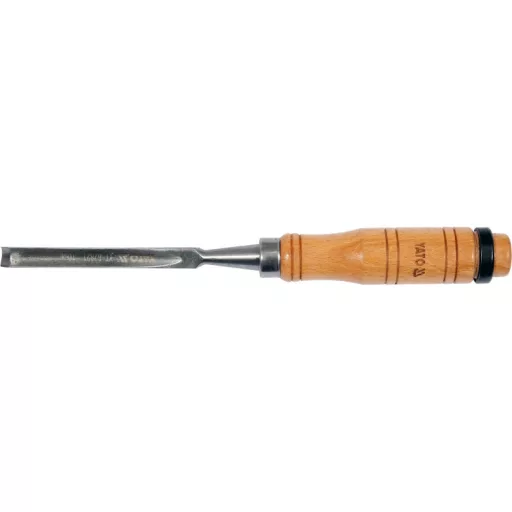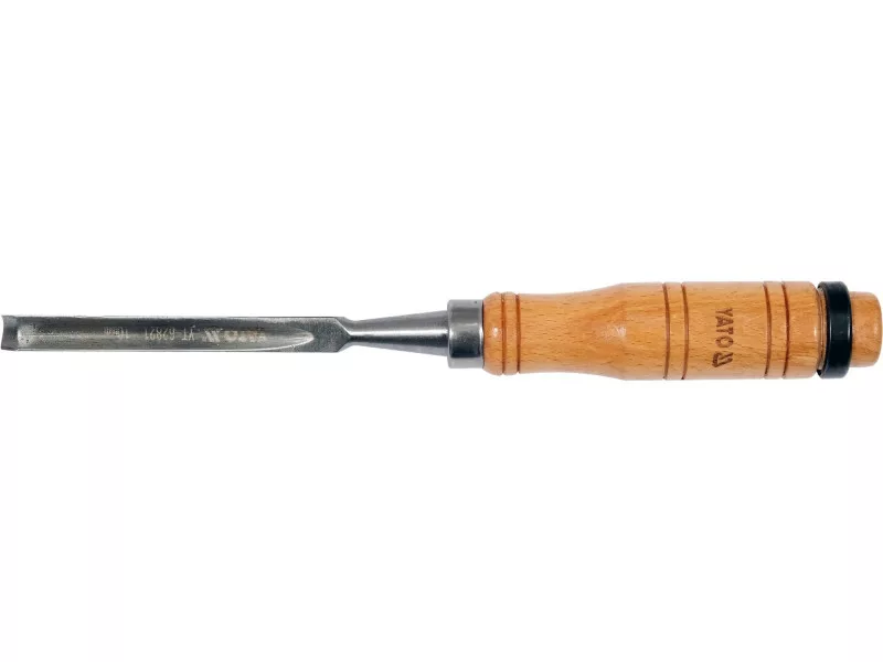 Semi-circular chisel for wood 10 mm material carbon steel 55# , blade length 125 mm , lacquered wooden handle with metal cap - length 112 mm For processing wood and wood-based materials.