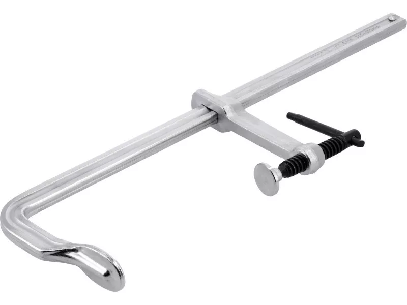 Carpentry squeezing with high fastening strength. Entirely forged steel. The pressure screw with a steel tile allows the use of squeezes for welding works. For tightening the material for carpentry and welding works.