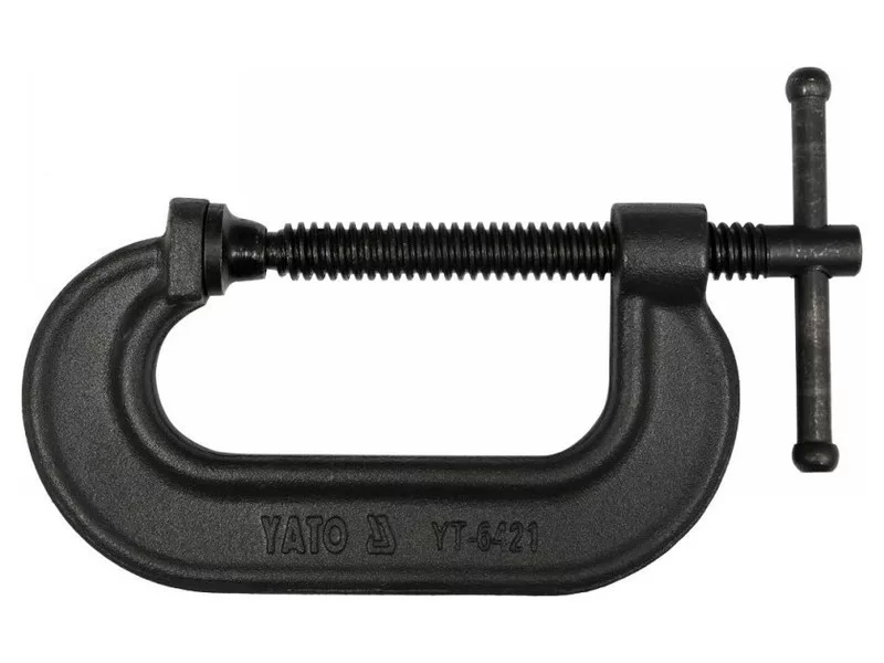 Specialist Crot C. Type C. Made of steel with a symbol 0.45%C, buckle height 75 mm, depth 48 mm. Maximum load of 1950 kg. Surface finish-phosphatled black. Designed for clamping materials for construction and assembly works. Especially needed for welding work or drilling. Strong 75 mm buckle for heavy assembly work.
