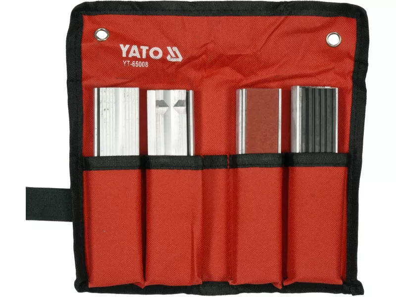 A set of replaceable jaws / overlays for the vice L-150 mm. The set includes 4 jaw pairs- aluminum with a pile for fixing round elements, aluminum cut, aluminum with plastic veneer, aluminum with grooved rubber. Fastening the jaws - using strong magnets pasted along the entire length. A set of jaw packed in a functional cover. Using the appropriate, soft overlays, we protect the tightened material from damage. Also covers with 125 and 100 mm long. For fastening on the victories. They protect the soft material from damage. Magnetically fixed overlays. Soft jaws / protective overlays with a length of 150 mm with magnetic fastening, 4 pairs for various purposes.
