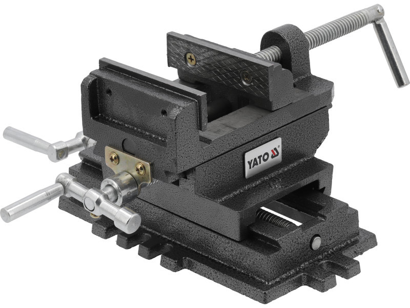 Cross machine vise equipped with two-way pull screws allows work in vertical and horizontal planes. It ensures stabilization of processed materials in construction, welding, locksmith, carpentry, etc. Works permanently attached to the workbench.