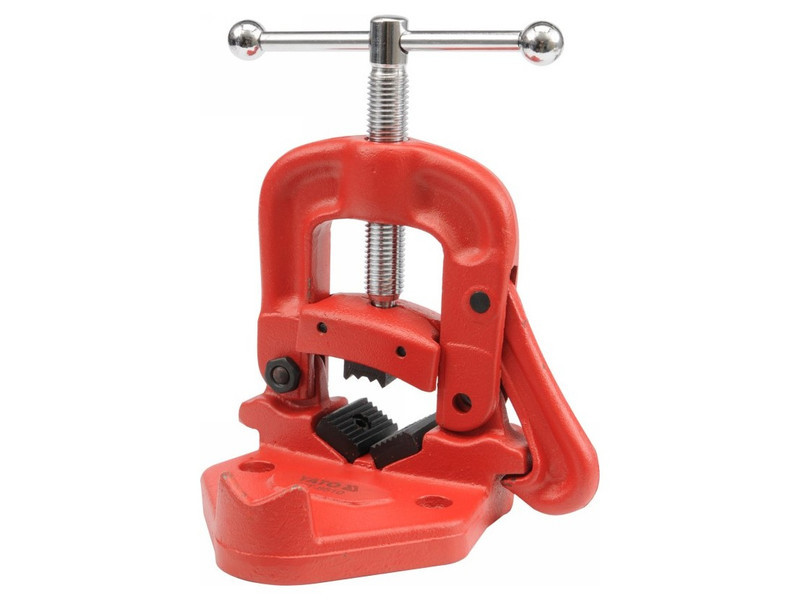 Pipe vise made of high quality malleable iron. The jaws are made of very hard S55C providing a secure clamp on the pipe and preventing them from rotating during operation.