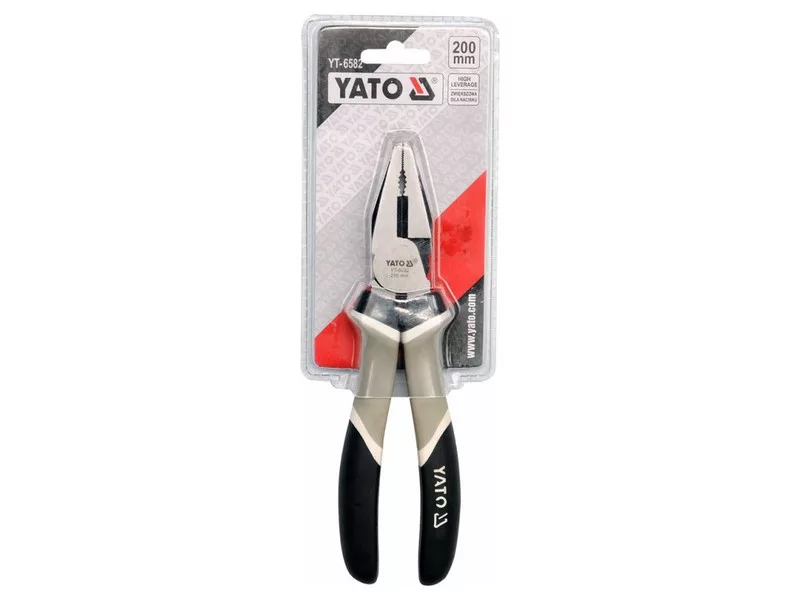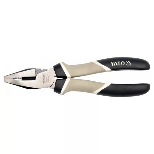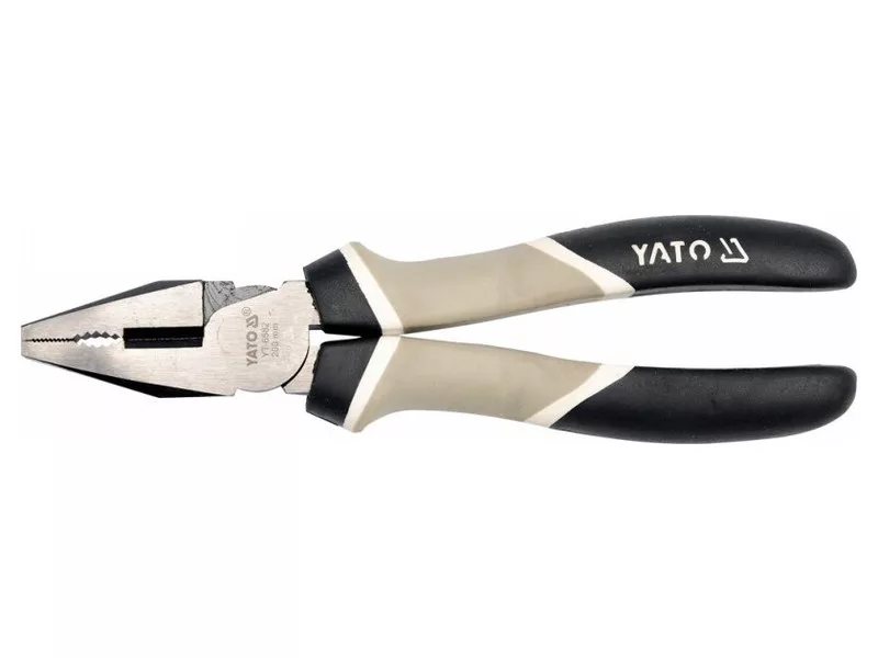 Universal pliers made of carbon steel with a symbol 55# in high leverage technology. This solution involves moving the mandrel connecting towards the top of the pliers. This clearly strengthens the pressure of the jaws to the held material. Handles covered with insulating covers. Universal pliers made of carbon steel with a symbol 55# in high leverage technology. This solution involves moving the mandrel connecting towards the top of the pliers. This clearly strengthens the pressure of the jaws to the held material. Handles covered with insulating covers.