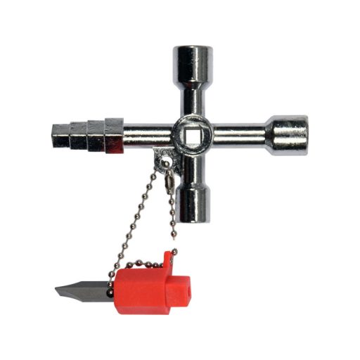 For opening and closing locks on technical cabinets, control cabinets, meter cabinets, etc.