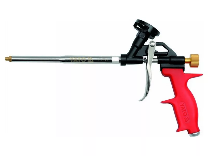 Pistol designed for the application of polyurethane foams. High quality - thanks to the use of suitable materials: stainless steel, aluminum and brass. The elements most susceptible to dirt and damage from the aggressive action of foams and corrosion, have been additionally protected with PTFE coating.