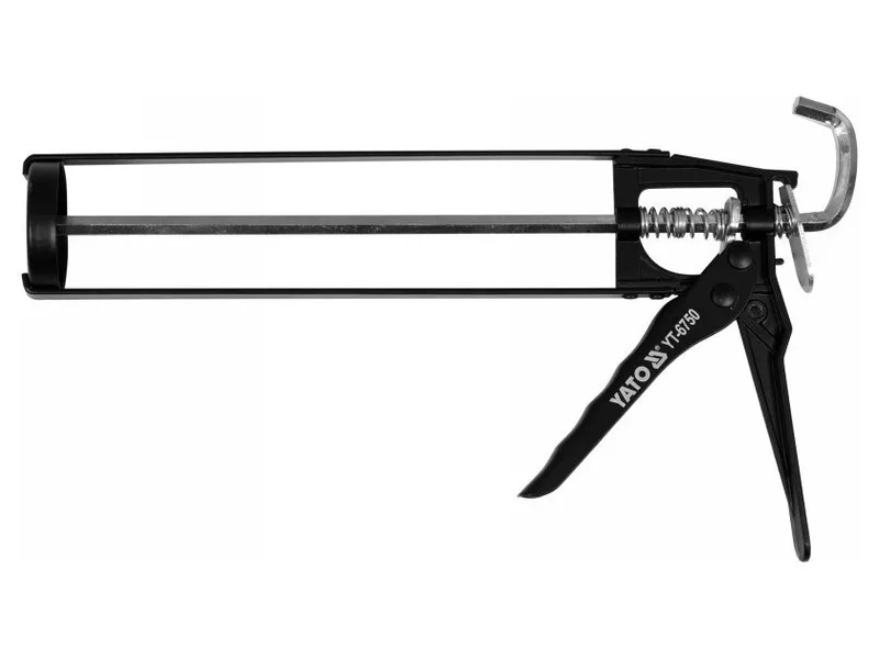 Skeletal mass squeezer, skeletal type. Lightweight, made of steel sheet, varnished. A convenient, profiled, ergonomic handle made of aluminum allows for effective application of thick masses, e.g. glues, sealants, lubricants, etc. substances from typical 300 ml containers. For easy squeezing of dense masses /e.g. Silicone / from typical 300ml containers.
