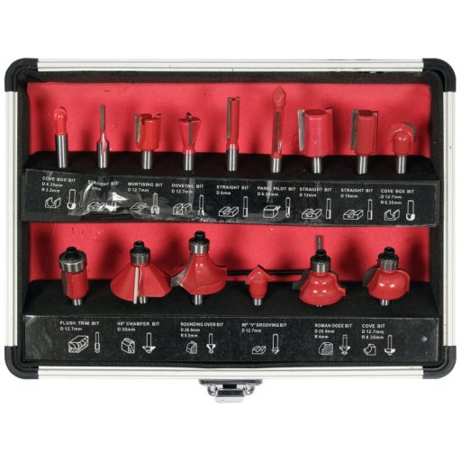 Set of 15 burrs for precision woodworking with router bits