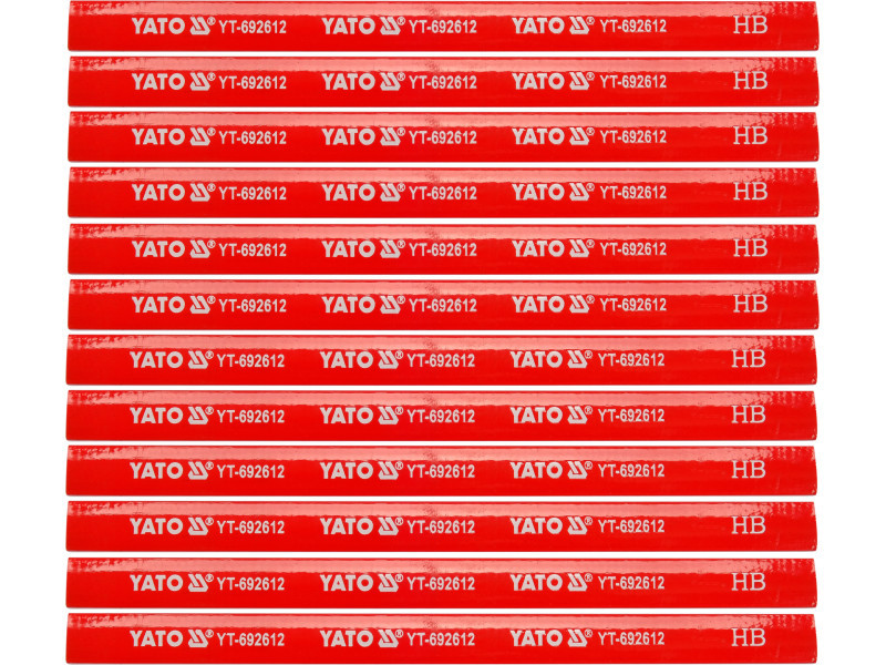 Carpentry pencils 175 mm. set. 12 pcs wooden, oval, varnished. Flat insert. Width approx. 2 x 5mm, hardness HB. Pencils designed for technical work, clear selection and drawing on wood and wood -based materials. For drawing or marking on the workpiece, mainly wood and wood -based products, pencils 12 pcs