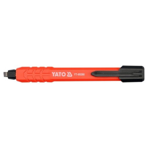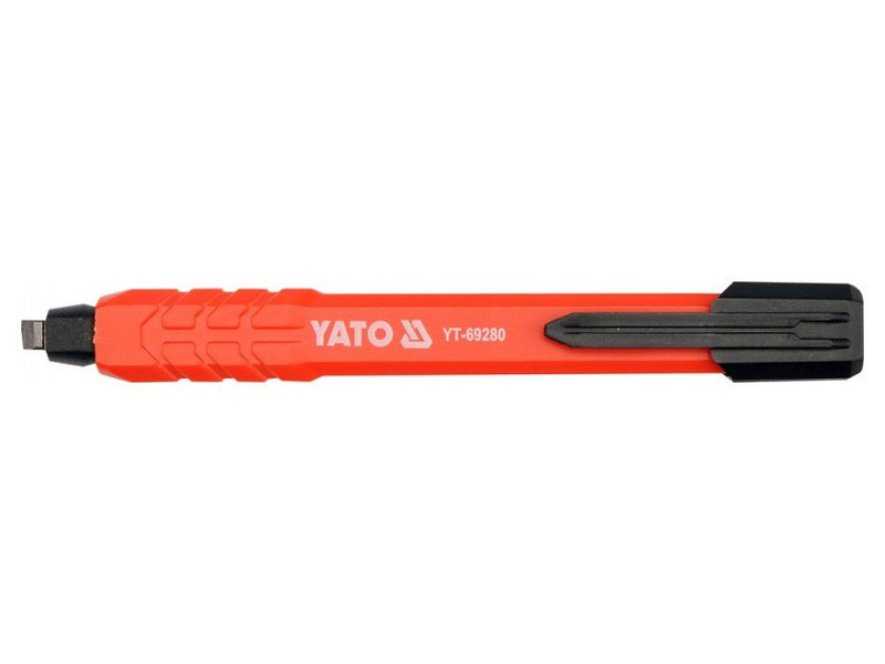 Pencil for technical applications with a wide automatically extended graphite insert. A light plastic body with a flexible clip for pinning. Depending on the graphite insert used, dedicated to various materials. For marking and rocked lines on wood -based materials such as boards, plywood, chipboard and various building materials.